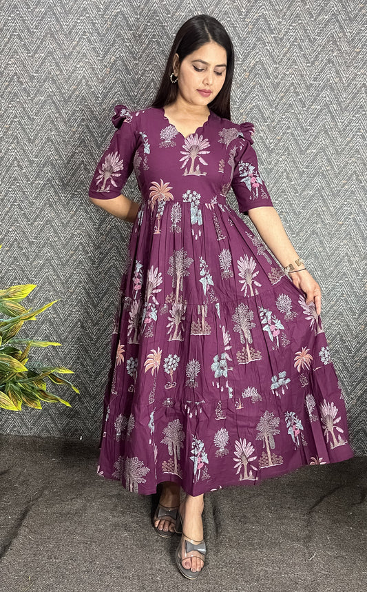 FESTIVE SPECIAL Premium Cotton Flex Fabric Maxi with Cotton lining 016Premium Heavy Cotton Flex printed fabric Square neck with scallop on front, elasticated sleeves Available in Feeding and Non Feeding pattern Length 49-50” cotton lining provided one side pocket back knots given 3 tier Maxi with Full flair both side feeding zips Dispatch time 3 days